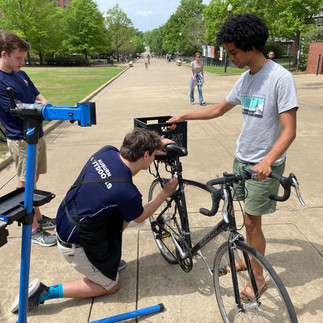 Bike Techs from Auburn Outdoors took the trailer out to Thatch Concourse and fixed up student's bikes on campus!